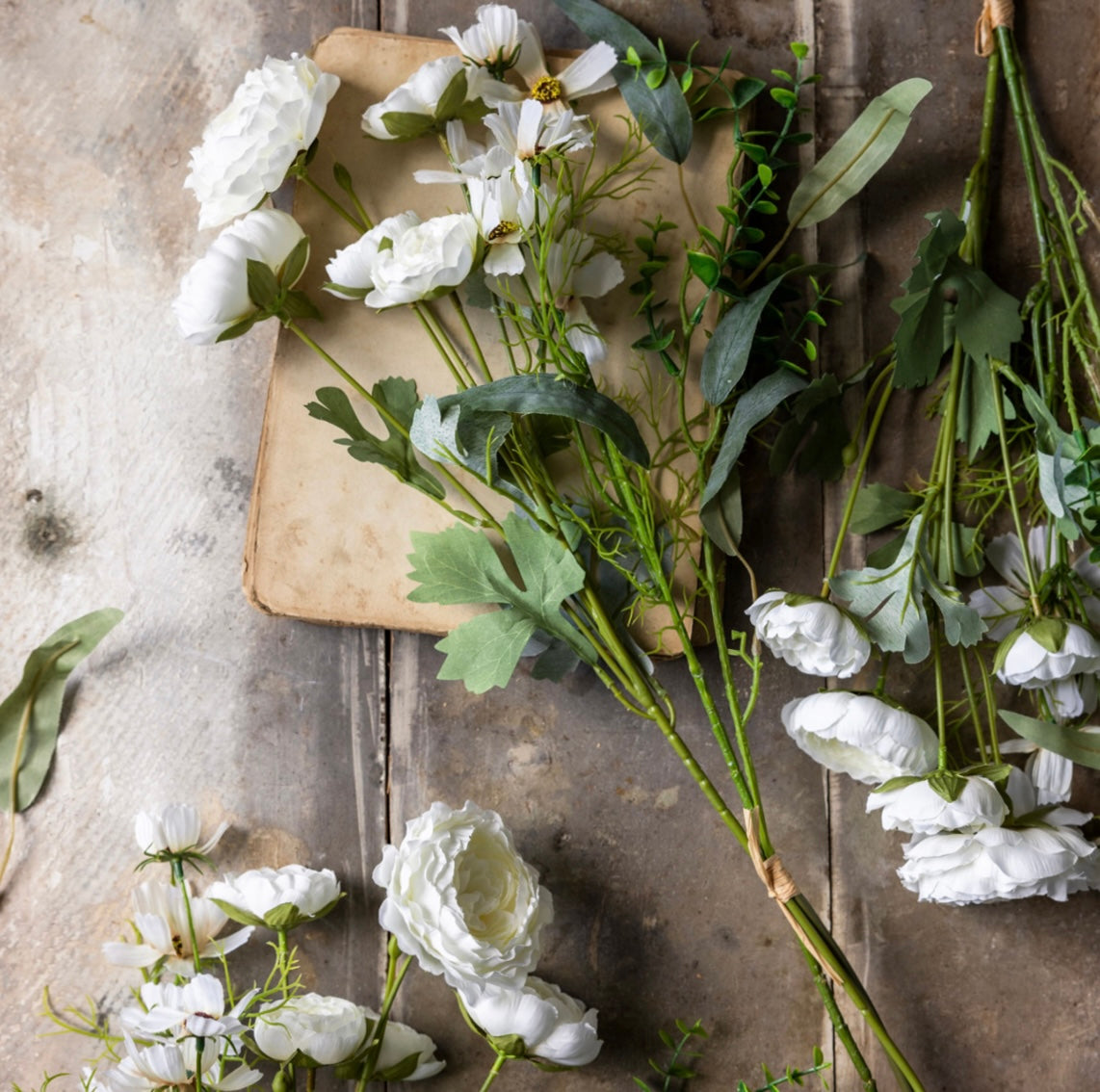 Take the work out of arranging flowers with this delightful Summer Garden Bunch. Compromising of ranunculus, cosmos and two different eucalyptus this is as easy as it gets. Beautiful in a jug on the kitchen table or anywhere, its green and cream hues work with a whole host of flowers. It’s natural beauty and simplicity will take you right through the year - come winter add a sprig of berry and you have transitioned through the season effortlessly.