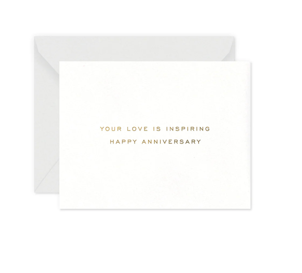 OUR INSPIRING ANNIVERSARY CARD IS PRINTED WITH FOIL STAMPING ON LUXE HEAVYWEIGHT TEXTURED CARDSTOCK. GOLD FOIL ON WHITE PAPER. FOR COUPLES WHO INSPIRE WITH THEIR LOVE.