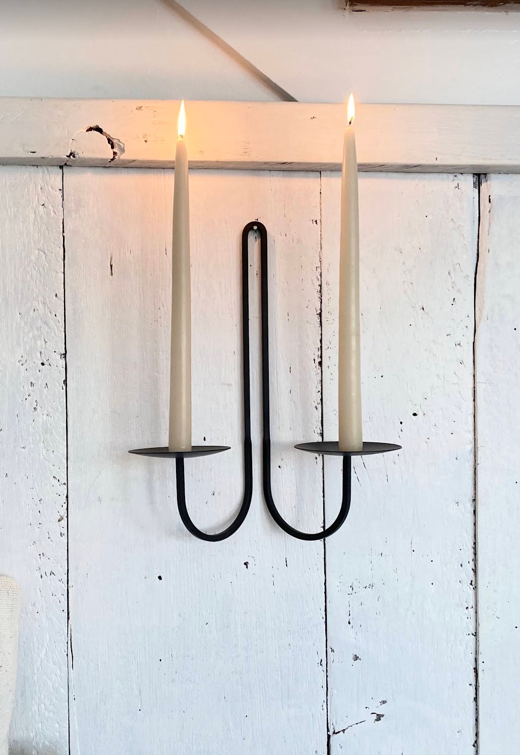 this double arm iron candle holder will pair beautifully with your favorite tapers.