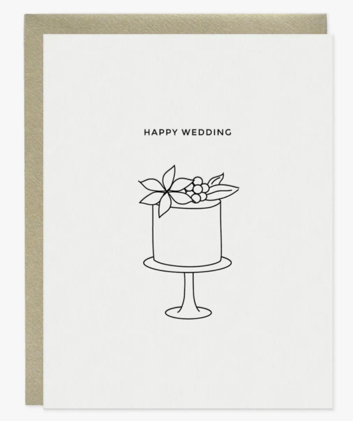 Minimalist linework makes a lovely impression on this floral topped wedding cake card. Original illustration by Missive