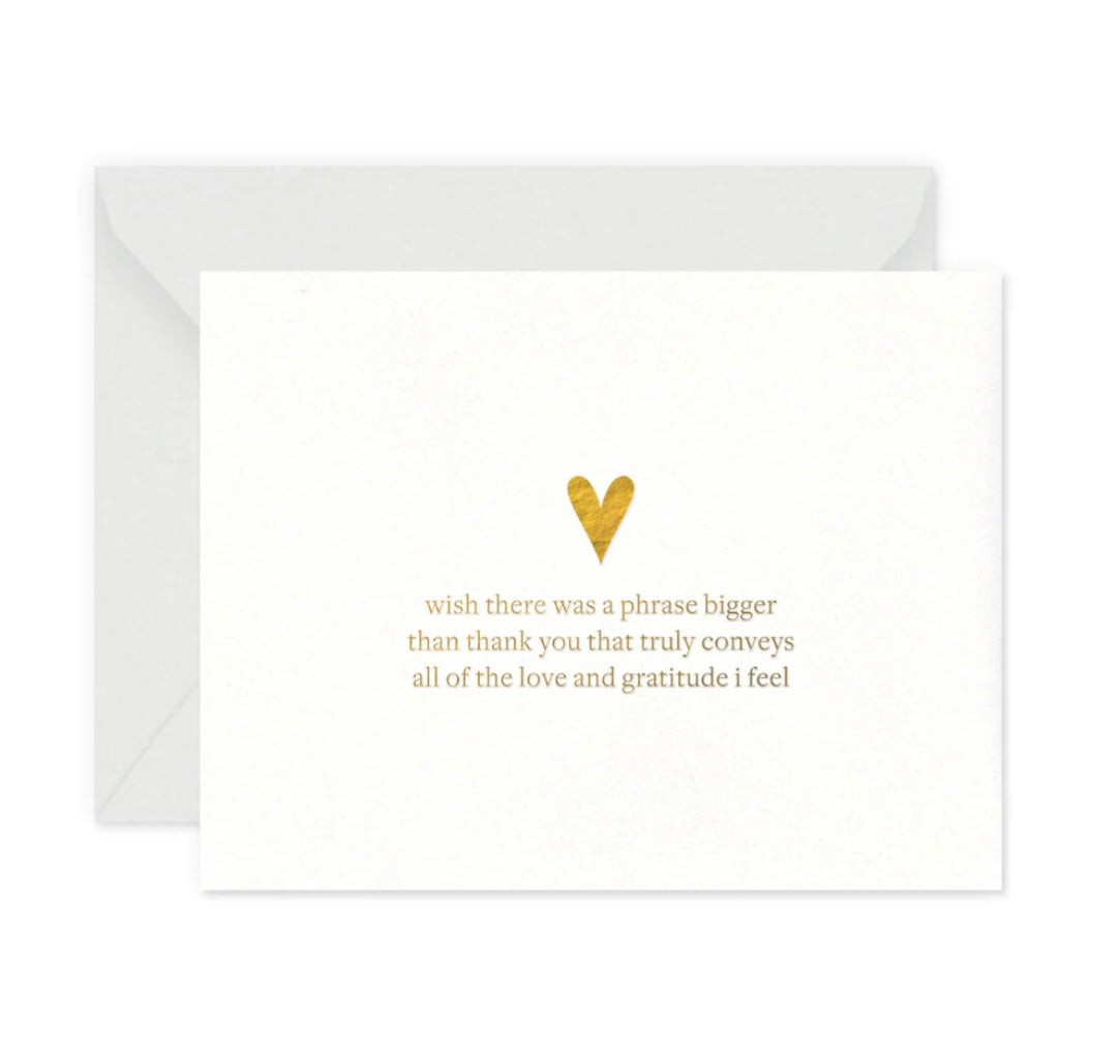 Printed with foil stamping on luxe heavyweight textured cardstock. Gold foil on white paper. For those times when you need more than a thank you.