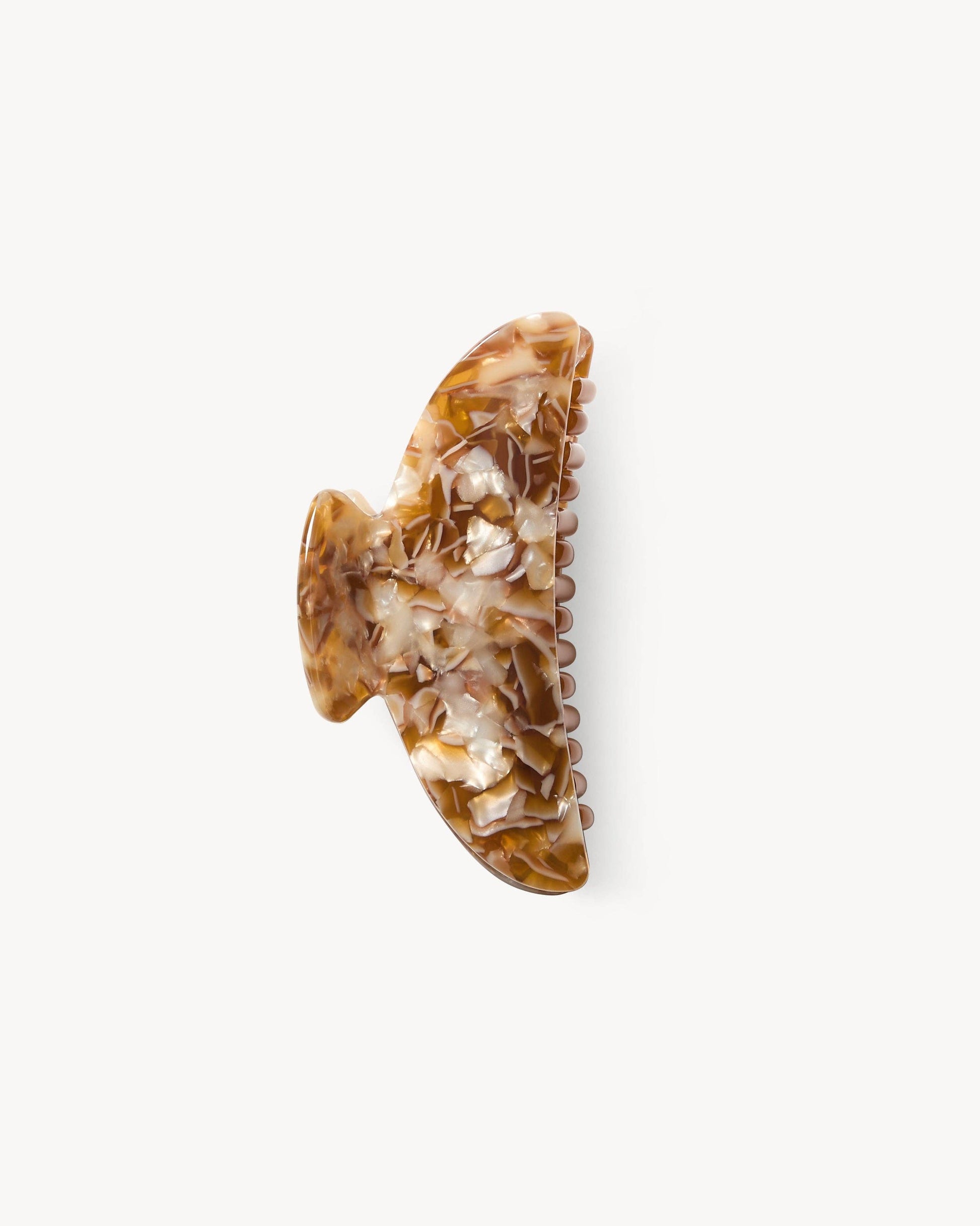 A double-walled hair claw designed to hold medium volumes of hair, handcrafted from Italian acetate with reinforced hardware. Recommended for all hair types and textures.
