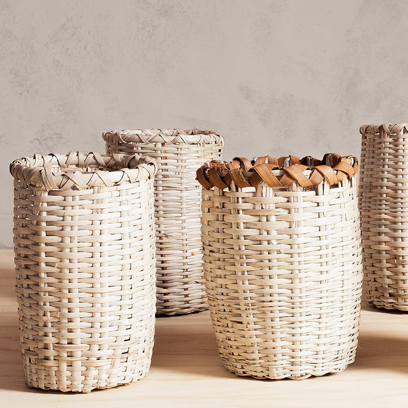 Perfect as a utensil holder or as a vase for dry goods or fresh flowers with an insert. Hand woven vases/holders are sold in a set of 2, one slightly smaller than the other.