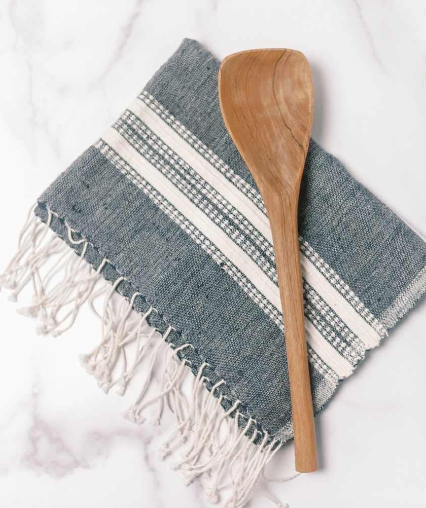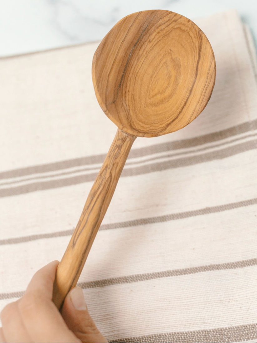 Hand-carved from wild olive wood, this duo spoon set is perfect for cooking and serving. Each is ethically crafted in Kenya from sustainably harvested wood and treated with food-safe sunflower oil. Measure approximately 3 inches wide x 12 inches long but please note that this product is handmade and variations will occur.