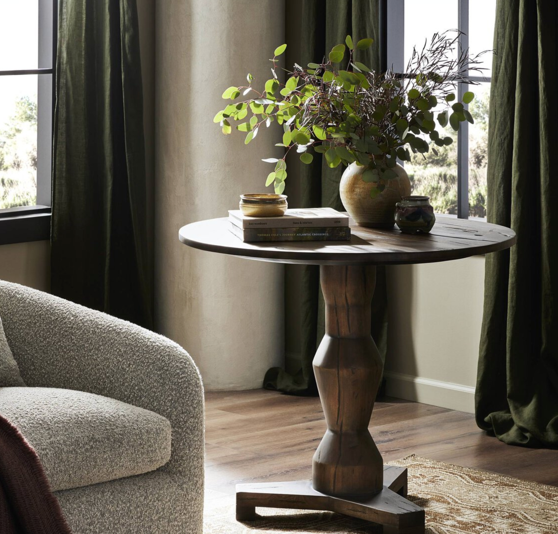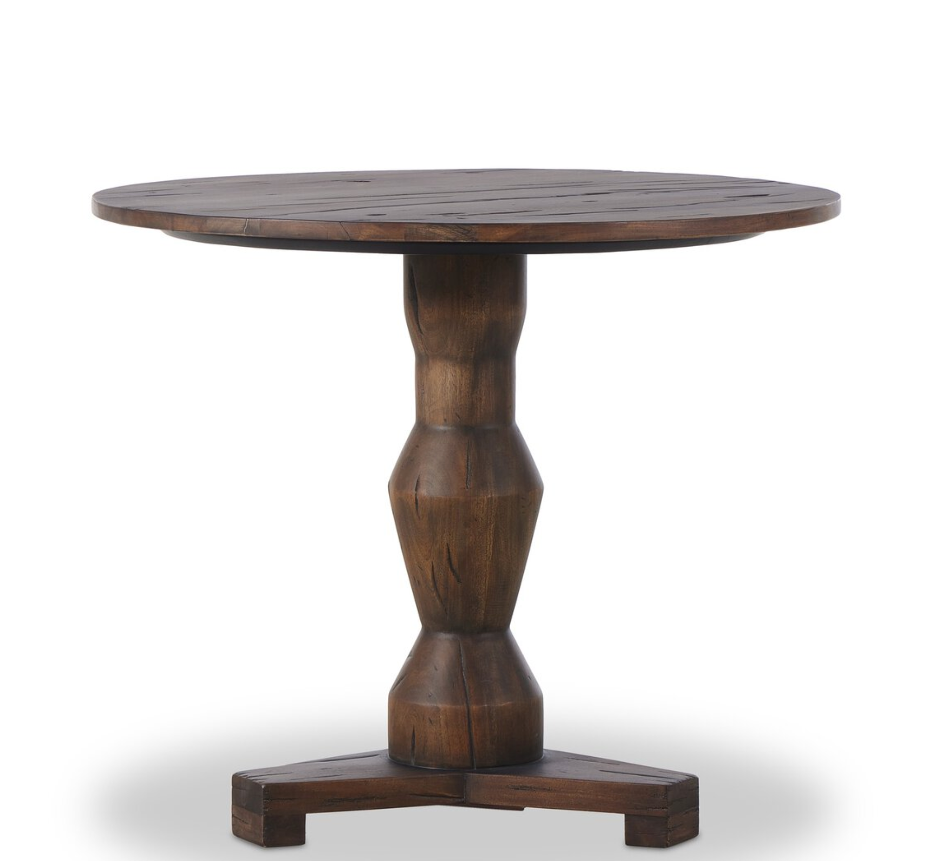 Inspired by Romanian sculptor Constantin Brâncu?i, a classic pedestal table of mixed character woods works a heritage look into the home.