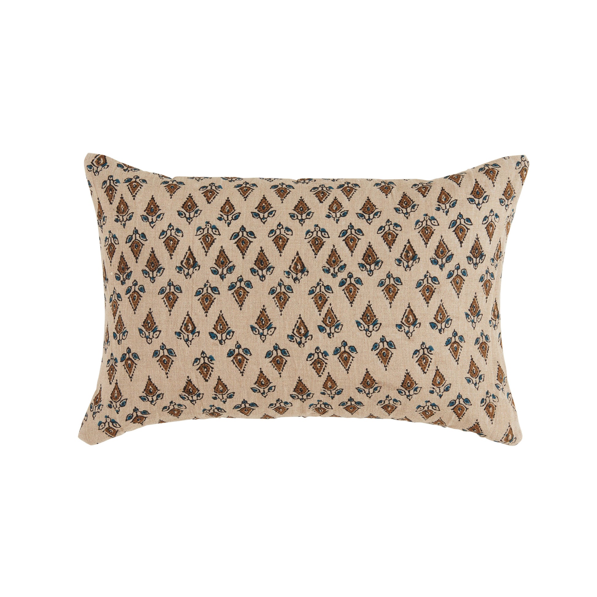 Our Riya throw pillow is made of linen and covered in a botanical block print design inspired by nature’s earthy palette. Each pillowcase is handprinted by skilled artisans using a traditional wood block technique. Featuring a crafted floral motif pattern with natural variation, the result is a highly artistic and one-of-a-kind pattern. Each pillowcase is handprinted by skilled artisans in India using a traditional wood block technique—designs are carved into individual blocks and hand-pressed to create a layered and detailed motif. Because each pillow is hand printed, expect natural variations in color and motif placement. Luxury Down or EcoSmart insert included.