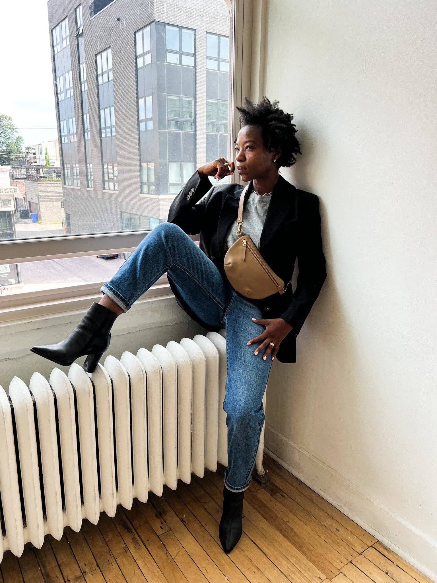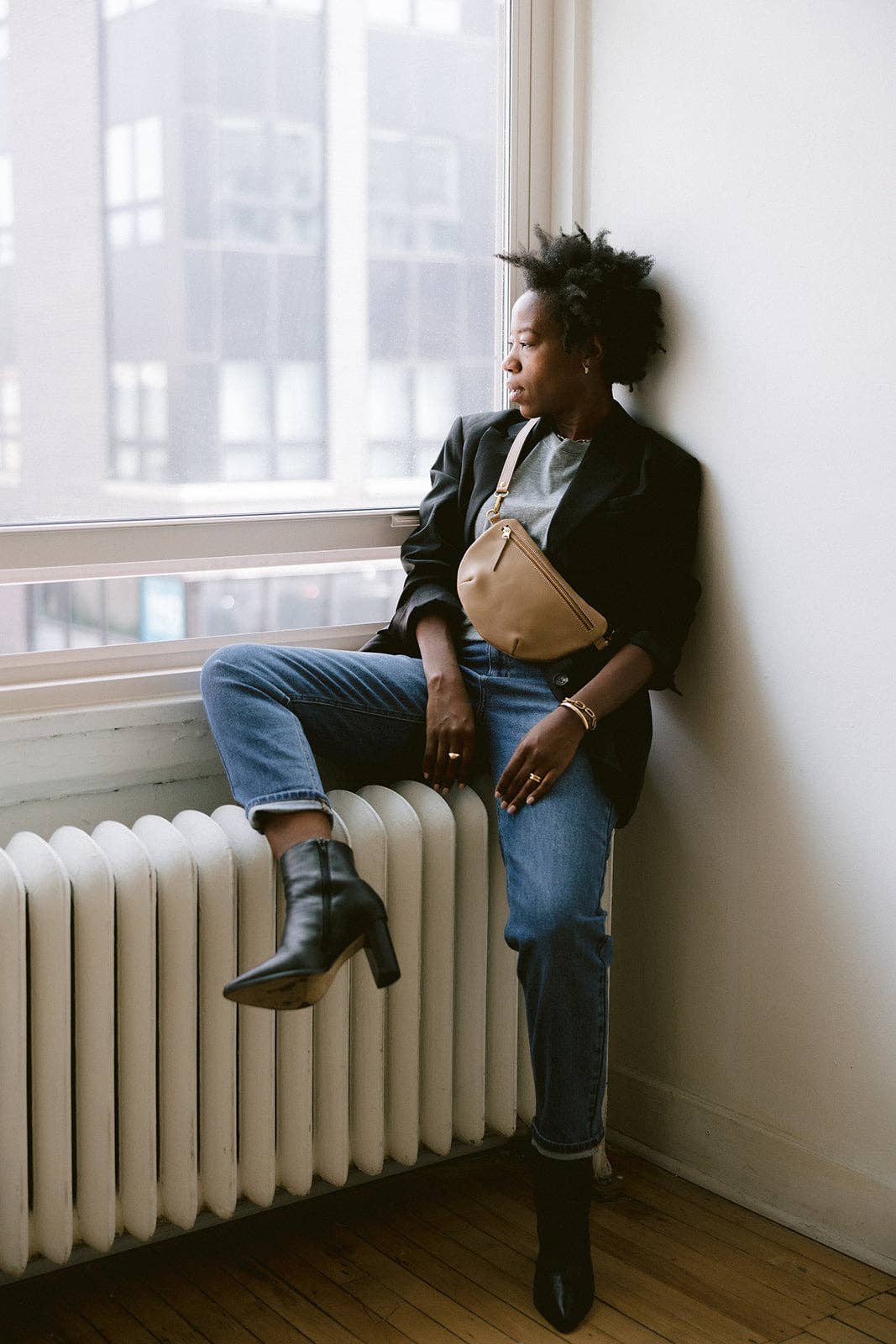The ultimate urban-chic bag and the new hero of your closet. The function is amazing. Once you go hands-free you'll never want to go back. Carry everything you need for daily life - phone, keys, lip gloss, card holder, mask, head phones, vaccine card. It’s the best for travel. Wear it with the zipper toward your body to make it completely safe/ secure in any situation. What makes this bag so special is its beauty. The Sling Bag has all the function while being chic and modern. With two straps you'll be able to adjust the length to fit your needs. Wear it across your body or around your waist.