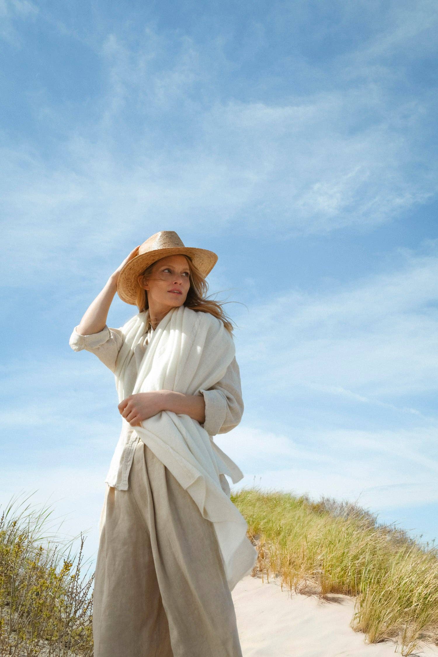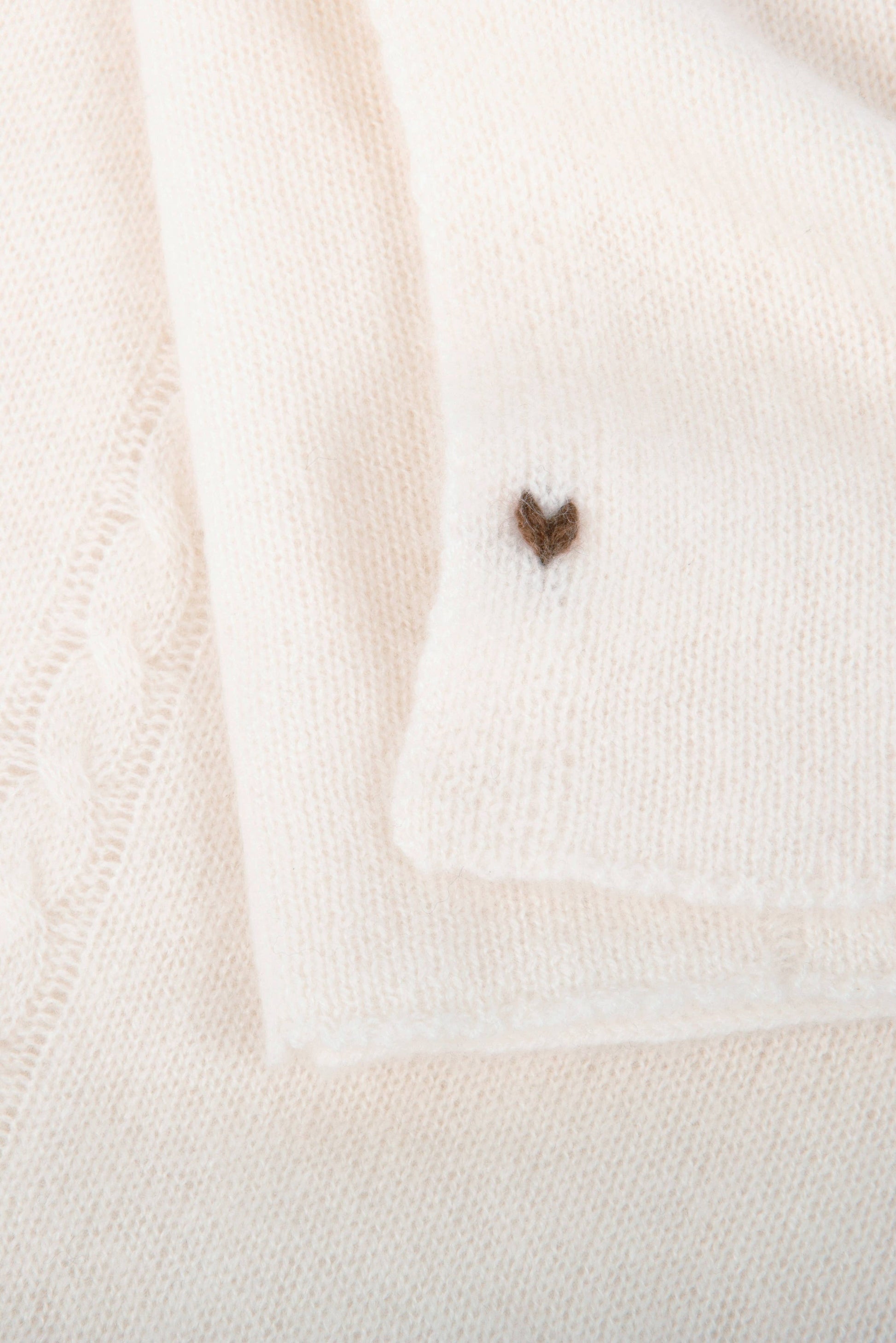 Say hi to your new most versatile accessory in the closet – tissue-light and unbelievably soft. You'll soon be taking it everywhere, throwing it on every outfit, and every season…every… * Three cable details gracefully spread over the wrap, peeping through in the most beautiful, unintentional way.