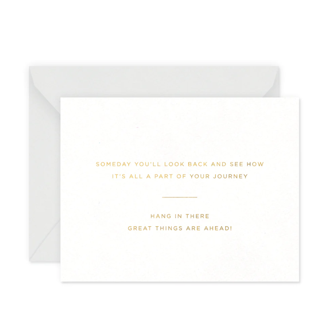 OUR YOUR JOURNEY CARD IS PRINTED WITH FOIL STAMPING ON LUXE HEAVYWEIGHT TEXTURED CARDSTOCK. GOLD FOIL ON WHITE PAPER.